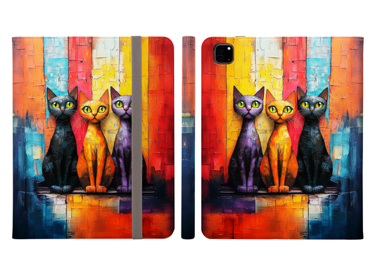 Trio Cats in Urban Mosaic Kaleidoscope Ipad Pro 11 & Pro 12.9 Protective Case and Pencil Holder