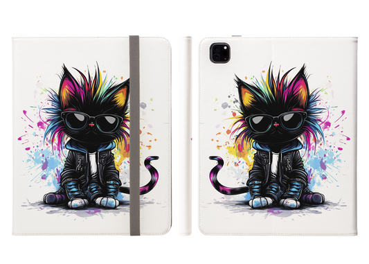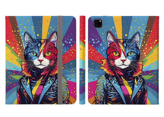 Cosmic Pop: Bowie-Inspired Cat Rockstar in Technicolor Ipad Pro 11 & Pro 12.9 Protective Case and Pencil Holder
