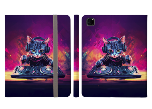 DJ Kitty Spinning Retro Beats Ipad Pro 11 & Pro 12.9 Protective Case and Pencil Holder
