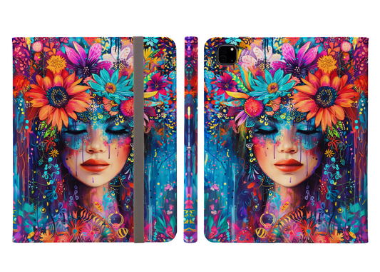 Electric Boho: Neon Flower Girl in Vibrant Hues Ipad Pro 11 & Pro 12.9 Protective Case and Pencil Holder