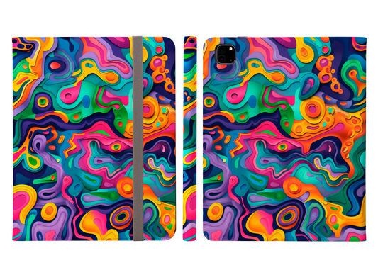 Vibrant Dreamscape of Psychedelic Paper Cut-Out Waves in Vivid Colors Ipad Pro 11 & Pro 12.9 Protective Case and Pencil Holder