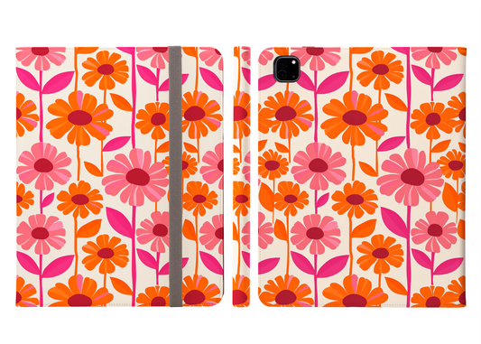 Retro Floral Bliss with Bold Pink and Orange Flower Design Ipad Pro 11 & Pro 12.9 Protective Case and Pencil Holder