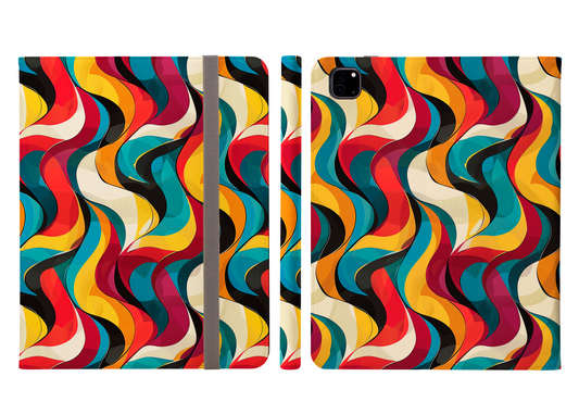 Retro Chic Vintage Blues, Reds and Yellow Waves Ipad Pro 11 & Pro 12.9 Protective Case and Pencil Holder
