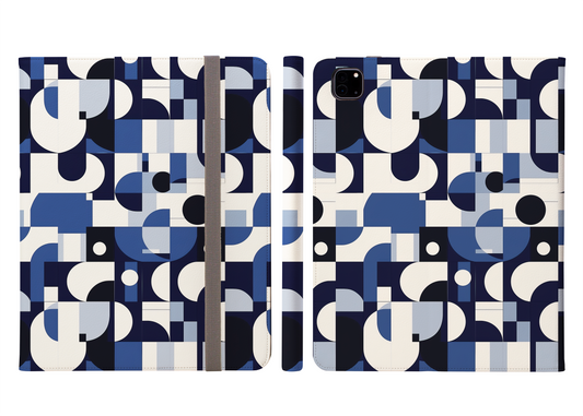 Navy Blue and White Mid-Century Modern Design Ipad Pro 11 & Pro 12.9 Protective Case and Pencil Holder