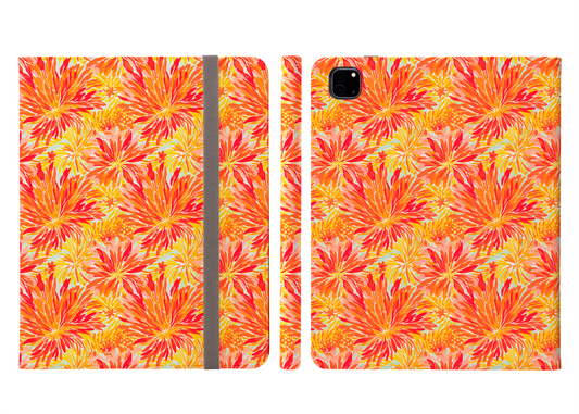 Golden Citrus Blooms Vibrant Orange and Yellow Watercolor Flowers Ipad Pro 11 & Pro 12.9 Protective Case and Pencil Holder