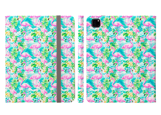 Tropical Flamingo Haven: Surrounded by Flowers and Palm Trees Ipad Pro 11 & Pro 12.9 Protective Case and Pencil Holder