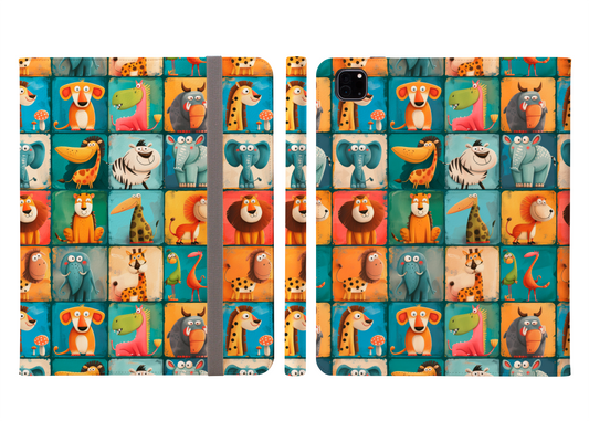 Cartoon Animals in a Vibrant Patchwork Wonderland Ipad Pro 11 & Pro 12.9 Protective Case and Pencil Holder