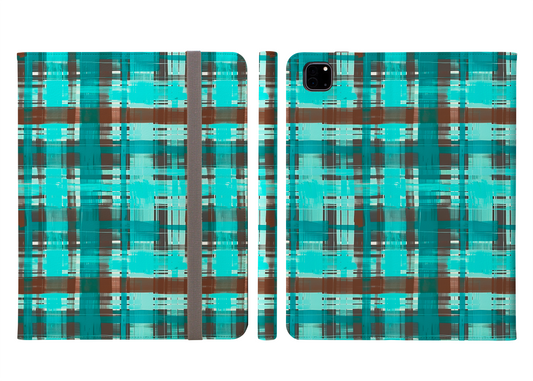 Bold Abstract Watercolor Plaid in Shades of Green and Brown Ipad Pro 11 & Pro 12.9 Protective Case and Pencil Holder