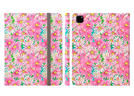 Springs Whisper Watercolor Pink Daisies Dancing on a Lush Green Stage Ipad Pro 11 & Pro 12.9 Protective Case and Pencil Holder