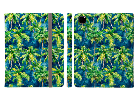 Azure Bloom Oasis: Bright Blue Large Flowers with Lush Green Palm Leaves Ipad Pro 11 & Pro 12.9 Protective Case and Pencil Holder