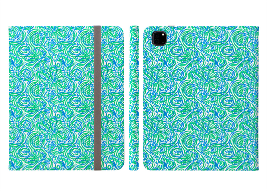 Emerald Tide Swirling Green and Blue Flowers Ipad Pro 11 & Pro 12.9 Protective Case and Pencil Holder