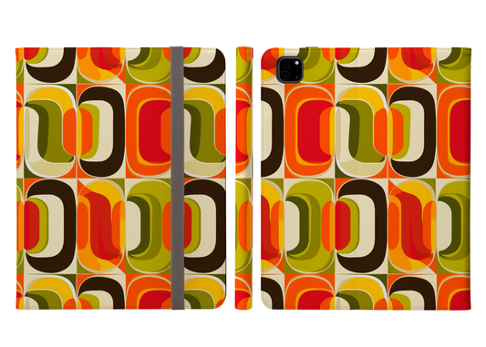 Vintage Vibes Retro 70s Geometric Pattern in Orange, Green and Brown Tones Ipad Pro 11 & Pro 12.9 Protective Case and Pencil Holder