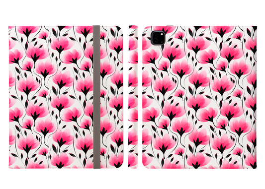 Elegant Modern Pink and Black Floral Blooms Ipad Pro 11 & Pro 12.9 Protective Case and Pencil Holder