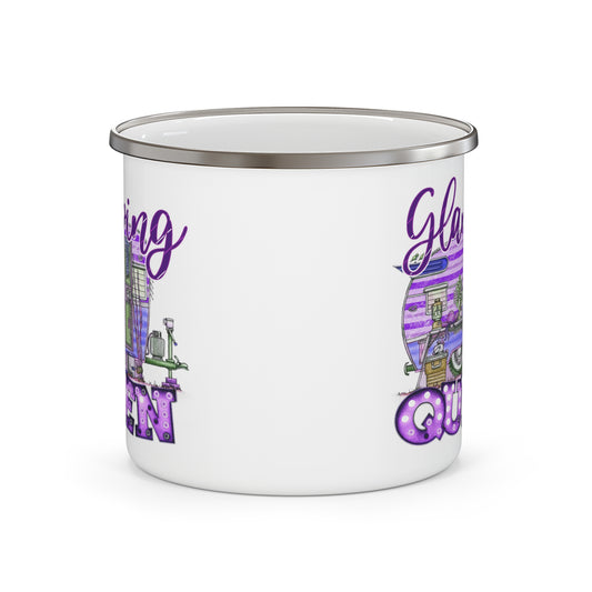 Glamping Queen with Retro Camping Trailer in Purple - 12oz Enamel Camping Mug