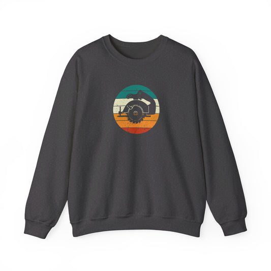 Retro Woodworking Sunset: Carving Memories with Chainsaw Charm - Crewneck Sweatshirt Unisex S-3XL