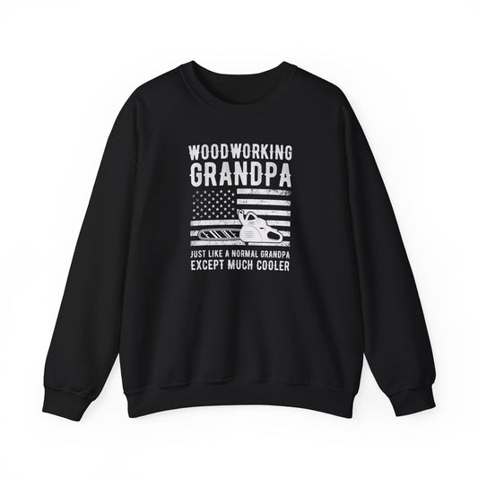 Woodworking Grandpa Just Like a Normal Grandpa Except Much Cooler American Flag - Crewneck Sweatshirt Unisex S-5XL