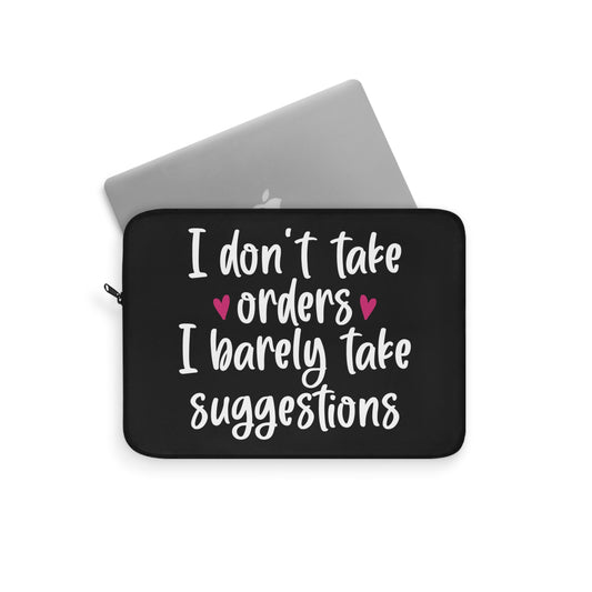 I Don't Take Orders I Barely Take Suggestions Sarcastic Sayings Laptop or Ipad Protective Sleeve 3 Sizes Available