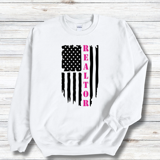 American Flag & Realtor in Pink - Crewneck Sweatshirt Unisex S-5XL