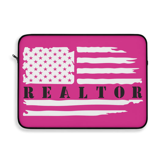 American Flag & Realtor Black & Pink Laptop or Ipad Protective Sleeve 3 Sizes