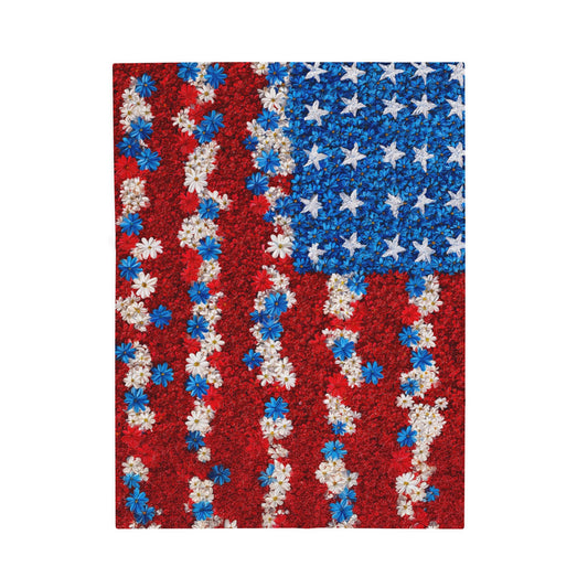 Spring Flowers in American Flag Print Velveteen Plush Blanket 3 Sizes