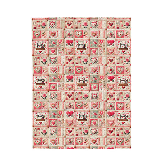 Valentines Quilted Sewing Print Velveteen Plush Blanket 3 Sizes
