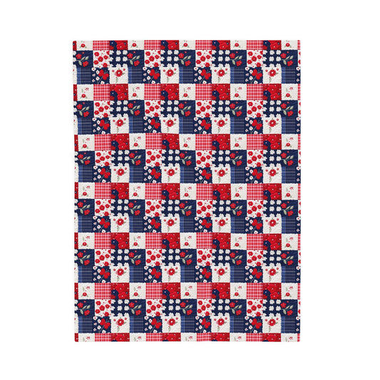 Spring Flowers Red White Blue Plaid Print Patchwork Quilted Print Velveteen Plush Blanket 3 Sizes