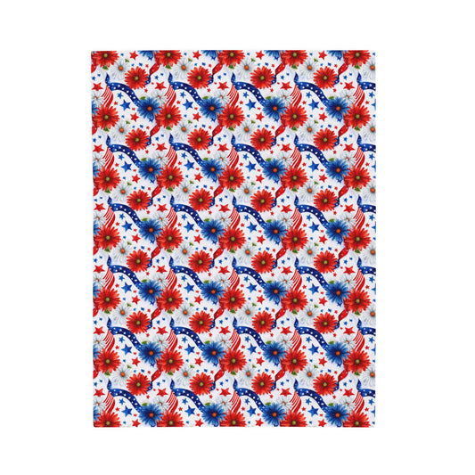 Patriotic Flowers Stars and Stripes Print Velveteen Plush Blanket 3 Sizes