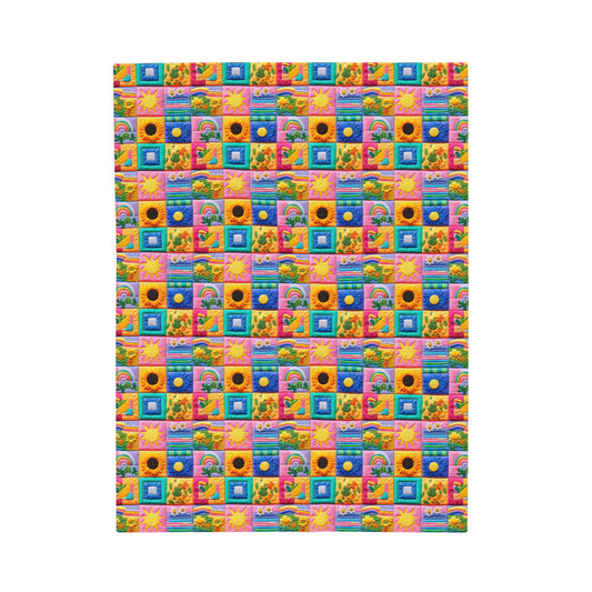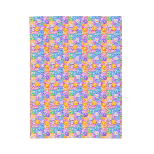 Spring Flowers and Rainbows Patchwork Quilted Print Velveteen Plush Blanket 3 Sizes