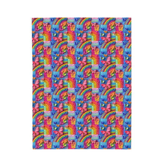 3d Spring Flowers Butterflies and Rainbows Patchwork Quilted Print Velveteen Plush Blanket 3 Sizes