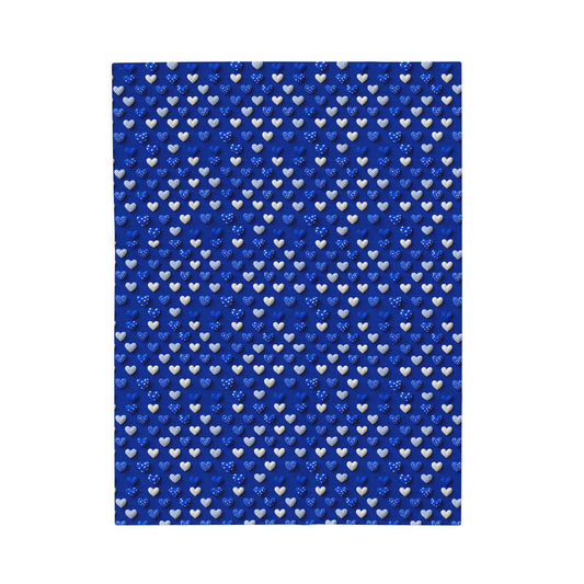 Hearts Blue and White Polka Dots Print Velveteen Plush Blanket 3 Sizes