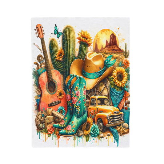 Western Music Rustic Southwestern Country Spring Print Velveteen Plush Blanket 3 Sizes