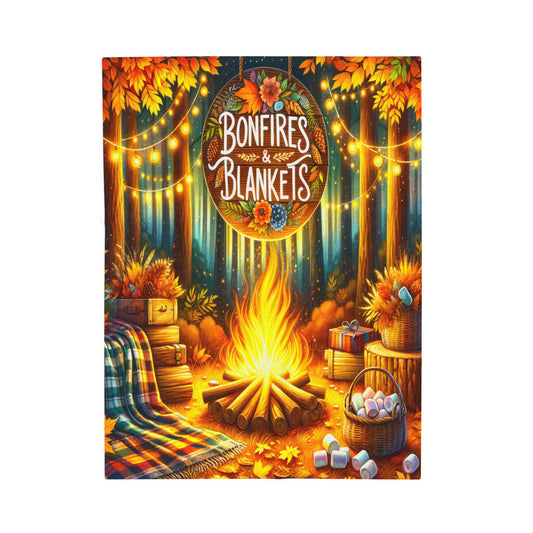 Fall Camping Bonfires & Blankets Print Velveteen Plush Blanket 3 Sizes