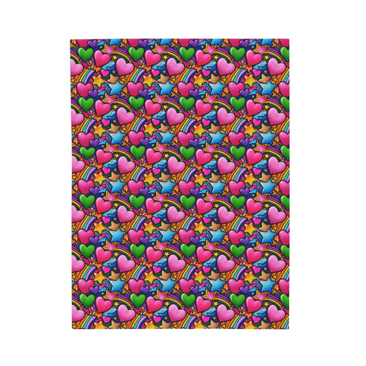 Retro Hearts Stars and Rainbows Velveteen Plush Blanket 3 Sizes