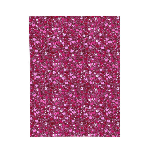 Hearts and Glitter Sparkled Valentines Print Velveteen Plush Blanket 3 Sizes