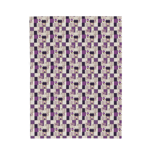 Patchwork Purple Pink Flowers Quilted Print Velveteen Plush Blanket 3 Sizes