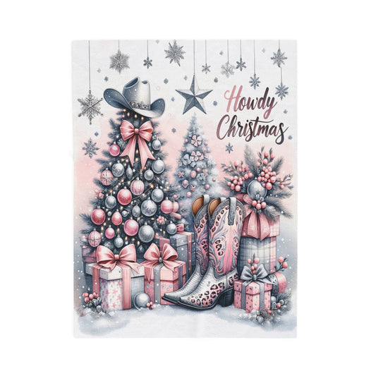 Country Western Howdy Christmas Velveteen Plush Blanket 3 Sizes