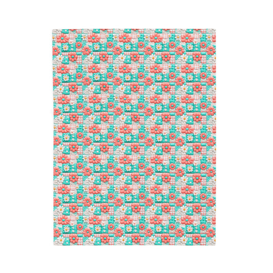 Spring Flowers 3D Flowers Patchwork Quilted Print Velveteen Plush Blanket 3 Sizes
