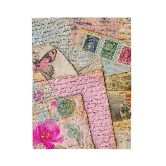 Love Letters Vintage Travel Print Velveteen Plush Blanket 3 Sizes