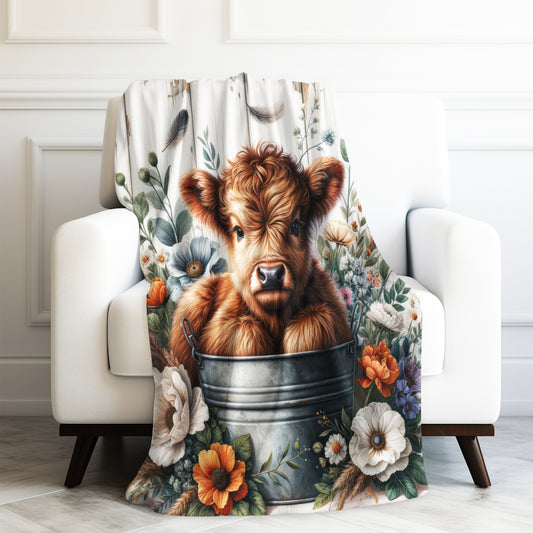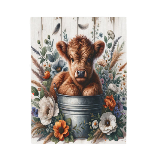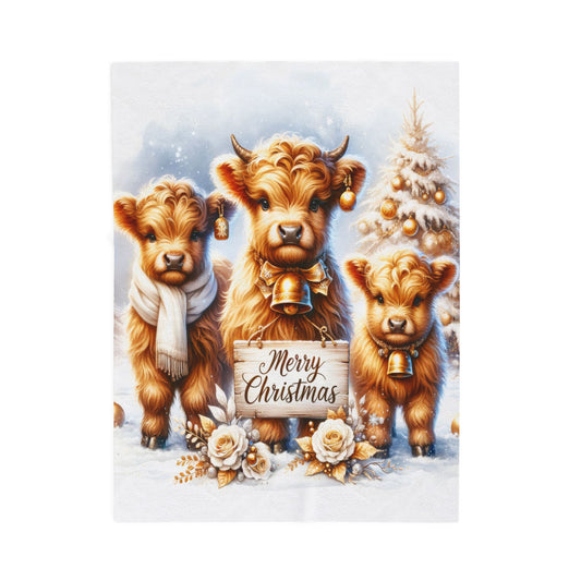 Baby Highland Cows Golden Merry Christmas Velveteen Plush Blanket 3 Sizes