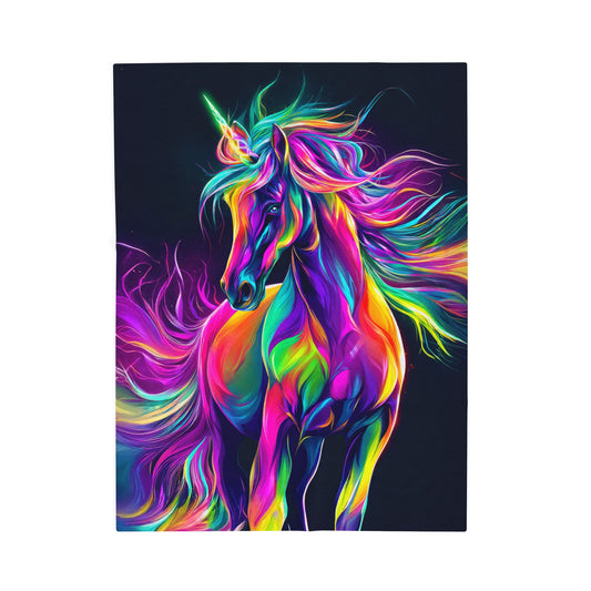 Psychedelic Neon Fantasy Rainbow Dream Unicorn Velveteen Plush Blanket 3 Sizes