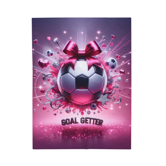 Coquette Bow "Goal Getter" Glitter Glam Girls Soccer Ball Velveteen Plush Blanket 3 Sizes