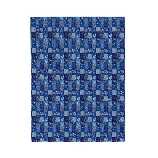 Patchwork Blue White Flowers Quilted Print Velveteen Plush Blanket 3 Sizes