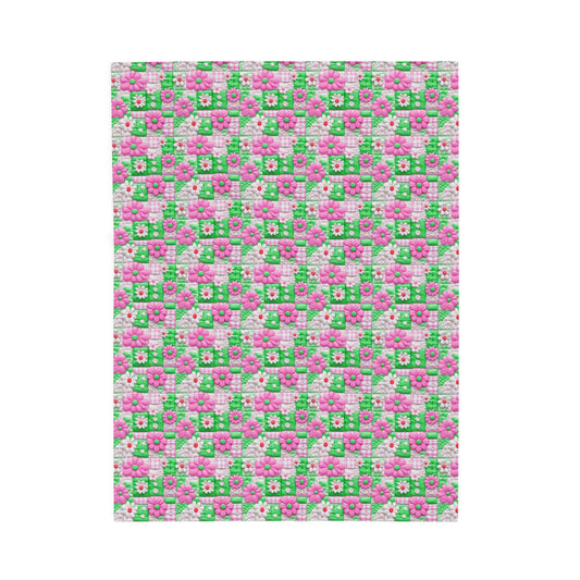 Spring Flowers Quilted Sewing Print Velveteen Plush Blanket 3 Sizes