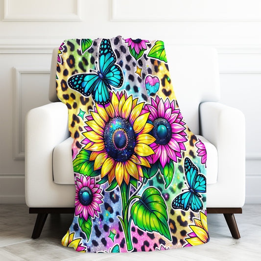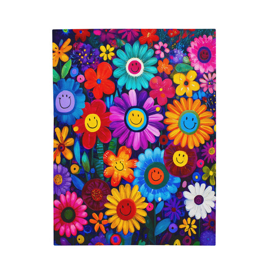 Happy Smiling Spring Fowers Velveteen Plush Blanket 3 Sizes