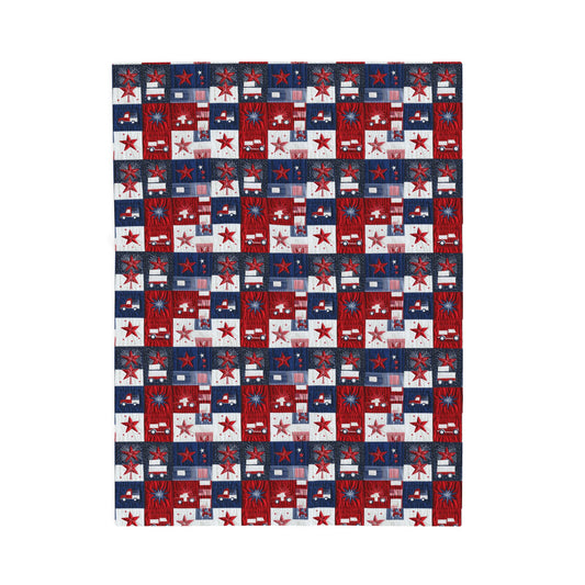 Stars and Stripes Red White Blue Plaid Print Patchwork Quilted Print Velveteen Plush Blanket 3 Sizes