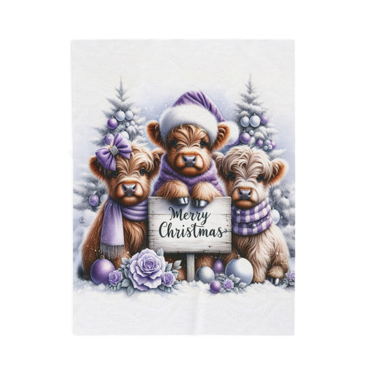 Baby Highland Cows Purple Merry Christmas Velveteen Plush Blanket 3 Sizes