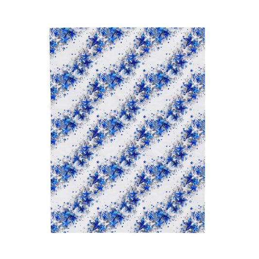 Texas Stars in Blue and Silver with Flowers Print Velveteen Plush Blanket 3 Sizes