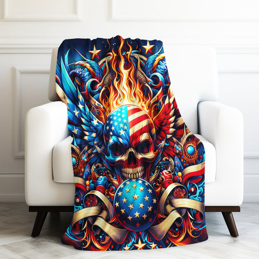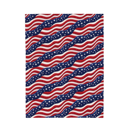 Patriotic Stars and Stripes Print Velveteen Plush Blanket 3 Sizes