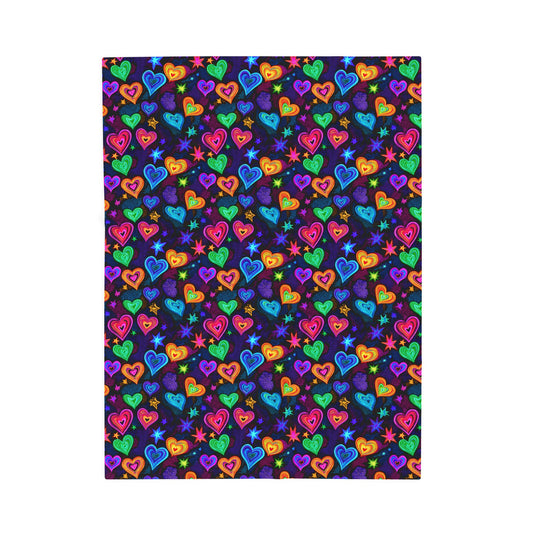 Neon Hearts and Stars Print Velveteen Plush Blanket 3 Sizes