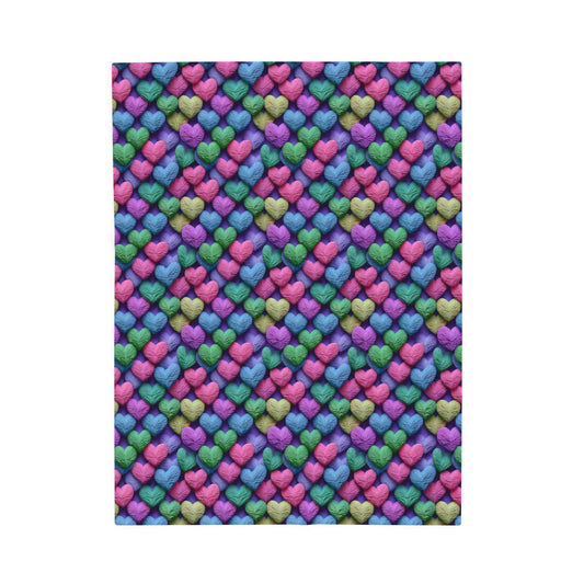 Hearts Hand Drawn Rainbow Velveteen Plush Blanket 3 Sizes